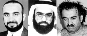 | 这张拼版照片显示的是2001年10月10日美国联邦调查局提供的哈立德·谢赫·穆罕默德的肖像照(中、左)以及他被捕后于2003年3月1日拍摄的照片。 新华社/法新 |