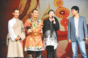 | 5月7日,在电影《唐卡》首映式上,主创人员与观众见面。 新华社发 |