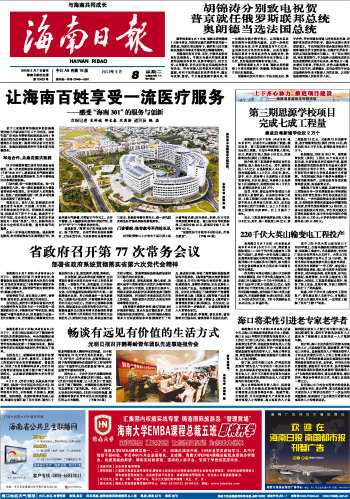 海南日报 首版 001 2012-05-081 2012年05月08日 星期二