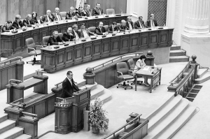 | 5月7日,在罗马尼亚首都布加勒斯特,罗马尼亚社会自由联盟新政府总理维克多·蓬塔在议会会议上发言。当晚,罗马尼亚社会自由联盟新政府在总统府宣誓就职。 新华社/路透 |