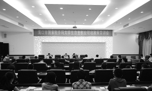海口市国家税务局举办大学生自主创业税收政策宣讲会,走进桂林洋高校与大学生“面对面”交流。(陈荣琨 摄影)