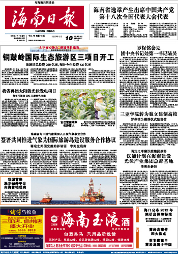 海南日报 首版 001 2012-05-101 2012年05月10日 星期四