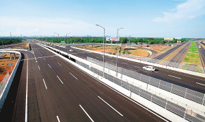 5月11日下午,俯瞰目前全省规模最大立交桥———海口市龙昆南延长线与绕城公路相交处的龙昆立交桥,气势恢弘,车辆顺畅穿行。据了解,全长6500米、双向六车道的海口市龙昆南延长线,北起货运大道,南与海口绕城公路连接,今年3月底实现功能性通车后,为过往车辆提供了方便快捷的交通条件。 本报记者 张杰 摄
