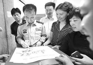 5月11日,东南大学师生请费俊龙题词、签名。 当日,在南京东南大学喜迎建校110周年之际,航天英雄费俊龙来到这里参加学生科技节活动。在与学校师生的座谈会和报告会上,费俊龙介绍了中国航天事业的发展和科技工作者攻关奉献、圆满完成航天飞行任务的事迹,并与大家互动交流,传播“特别能吃苦、特别能战斗、特别能攻关、特别能奉献”的载人航天精神。费俊龙还参观了东南大学部分科研实验室,并被聘请为“东南大学学生创业导师”。 新华社发