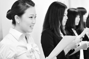 5月12日,应考人员在参加面试。 当日,澳门航空举办招收空中乘务员面试,计划招收20名乘务员。 新华社发