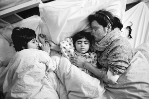 | →2009年12月10日,在巴基斯坦伊斯兰堡的一家康复中心,一名面部遭到硫酸袭击的母亲与自己的孩子相拥而眠。