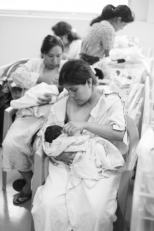| ↑2012年5月9日,几位母亲在危地马拉市一处医院哺乳自己的新生儿。 |