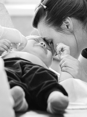 | ←2006年4月18日,在白俄罗斯首都明斯克的儿童肿瘤及血液病中心,一名母亲在孩子接受治疗时潸然泪下。这家儿童肿瘤及血液病中心是在切尔诺贝利核事故之后,为帮助核事故中受害的患儿所建立的。