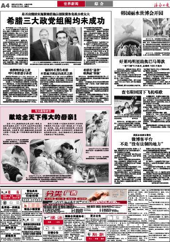 海南日报 世界新闻 综 合 004 2012-05-131 2012年05月13日 星期日
