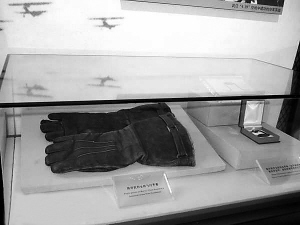| 南京抗日航空烈士纪念馆收藏的航空手套,这是陈怀民在升空决战前夜留给妹妹陈难的。 |