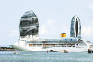 | 停靠在三亚凤凰岛的“歌诗达维多利亚”号邮轮。 特约记者 孙清 摄 |