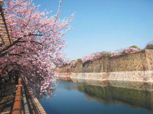 翌日,天公作美,阳光灿烂,车子在大阪城市中穿梭,沿街片片盛开宛若云霞的樱花,点缀着这座干净而美丽的城市。到达大阪有名的赏樱之地大阪城公园时,我一下车,便被满园怒放的樱花迷了双眼。