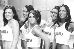 五月十三日,在匈牙利首都布达佩斯,参加健美警察小姐比赛的选手们在比赛间隙合影。 当日,匈牙利举办健美警察小姐比赛。 新华社发