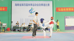| 图为省运会跆拳道比赛中的一个场面。 刘孙谋 摄 |