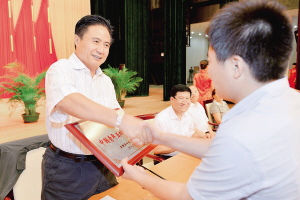 | 五月十四日,省委书记、省人大常委会主任罗保铭为鹦哥岭自然保护区工作站青年团队颁发荣誉奖牌。