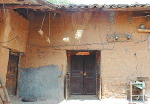 | 图为赵登用在农村的家,房屋墙体已经开裂。 新华社发