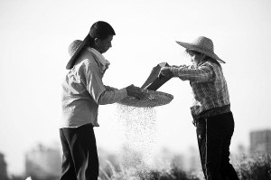 海南粮仓 收获忙 5月14日,琼海市嘉积镇的群众正在收拾晾晒的稻谷。连日来,全国200个产粮大县(市)之一的琼海市16万亩早稻陆续开镰收割。据农技人员介绍,今春琼海早稻主打“科六十三”,虽然遭遇持续低温寡照影响,但仍获得好收成,预计亩产将达到800斤以上。 特约记者 蒙钟德 摄