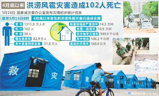 新华社北京5月16日电 记者16日从民政部救灾司获悉,财政部、民政部15日向近期遭受严重风雹、洪涝灾害的甘肃、江西、湖南三省灾区紧急下拨3.8亿元中央自然灾害生活补助资金。 这笔资金主要用于风雹、洪涝灾害受灾群众紧急转移安置、过渡性生活救助、倒损住房恢复重建和向因灾遇难人员家属发放抚慰金,帮助灾区做好受灾群众基本生活救助工作。4月底以来,我国先后�