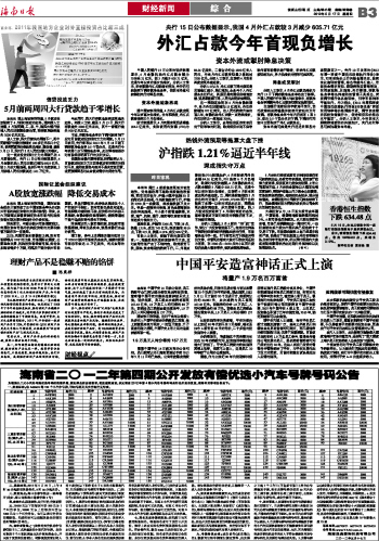 海南日报 财经新闻 011 2012-05-171 2012年05月17日 星期四