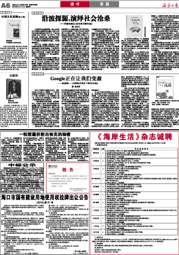 海南日报社新闻信息中心制作维护 地址:海南省海口市金盘路30号新闻大厦 发行部:0898-66810999 广告部:0898-66810888 [