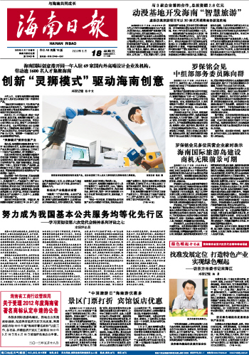 海南日报 头版 001 2012-05-181 2012年05月18日 星期五