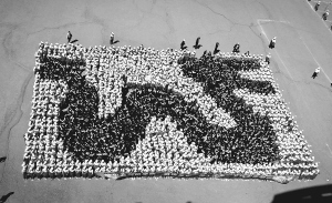 5月18日,千名青少年摆成巨龙图案,外圈的白色寓意为水滴包围巨龙。
