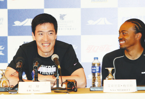 当日与刘翔一同出席新闻发布会的还有美国男子跨栏项目的三位顶尖高手梅里特、理查德森以及奥利弗。梅里特刚刚在月初跑出13秒03的赛季最好成绩,理查德森是2011年大邱世锦赛的冠军得主,奥利弗也曾在2010年跑出过12秒98的个人最好成绩,长期以来是刘翔的主要竞争对手。