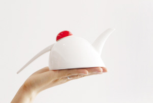 在众多茶壶中,一个无手柄的水滴茶壶引人注目。壶形就像一滴水,拿在手上如执水滴,外形时尚,手感极好。