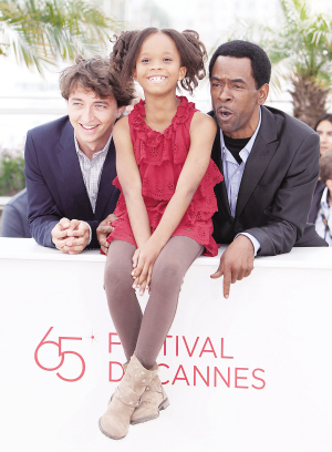 | 5月19日,美国片《南方的野兽》(从左至右)导演本·蔡特林、演员沃利斯和德怀特·亨利出席拍照式。该片入围本届电影节“一种关注”单元。 新华社发 |