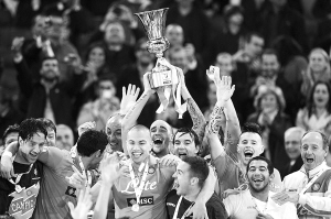 北京时间5月21日,在罗马举行的2011/2012赛季意大利杯决赛中,那不勒斯队以2:0战胜尤文图斯队,夺得冠军。 图为那不勒斯队球员在颁奖仪式上捧杯庆祝夺冠。 新华社发