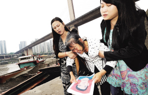 5月22日,李泽勇的母亲杨素碧(中)在其失踪现场悲痛万分。