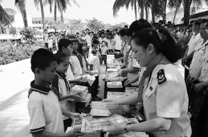图片新闻 税收宣传月期间,各市县国税局纷纷开展以“学雷锋、献爱心”为主题的送税法进校园活动。图为昌江县国税局向叉河小学师生赠送图书文具和税法宣传资料。(陈荣琨 摄)