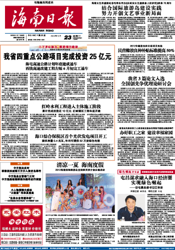 海南日报 首版 001 2012-05-231 2012年05月23日 星期三