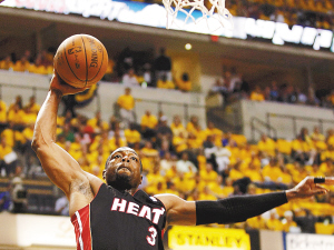 | 热火队球员韦德突破上篮。 新华社发 |