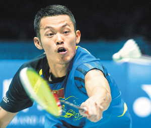 | 林丹在与日本队的比赛中回球。 新华社发 |