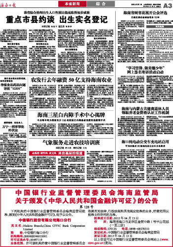 海南日报 本省新闻综合 003 2012-05-261 2012年05月26日 星期六