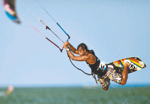风筝冲浪结合了特技风筝、帆板、冲浪、滑水、滑板等多种运动元素,是世界上发展最快的水上运动之一。这项被称为本世纪最有趣的运动,前不久刚刚成功申请成为2016年巴西里约热内卢奥运会的正式比赛项目。