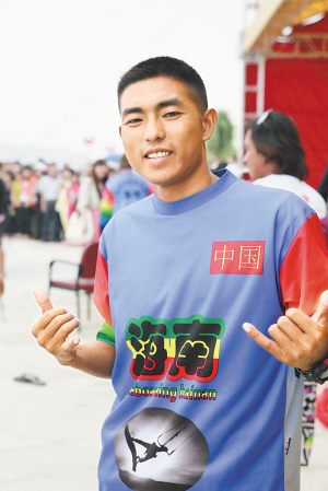 | 在福建平潭赛上,海南代表队身着队服惊艳亮相。图为海南队总教练晓晨。 赵红 摄 |