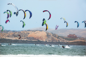 风筝冲浪是一项借助充气风筝,脚踩冲浪板,极具刺激、惊险的水上运动,起源于欧美,至今只有十几年历史。在中国兴起,也不过三五年。