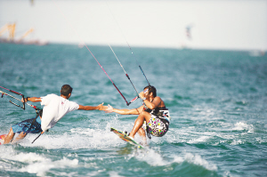 展开风筝、系上帆板、换上长衣短裤。当风筝被风涨起,人被拉直,帆板前行时,一切的快乐只有玩风筝冲浪的人知道了。
