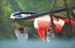 每每收起帆板,叠好风筝,回到陆地上,他们竟有了很多的不习惯,车多、人杂、事忙。