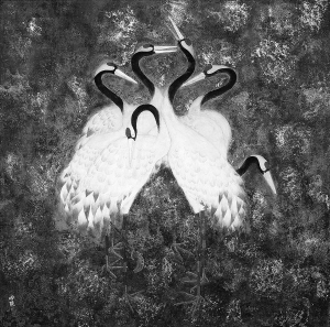 | 《群鹤齐舞》 (岩彩画) 林明俊 |