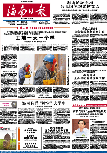 海南日报 头版 001 2012-05-281 2012年05月28日 星期一