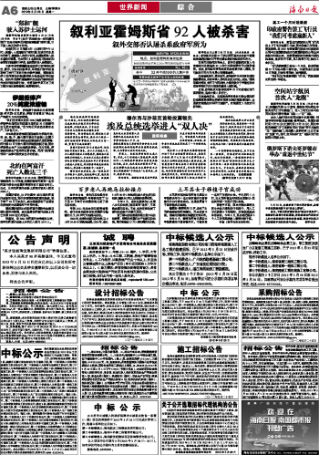 海南日报 世界新闻 006 2012-05-281 2012年05月28日 星期一