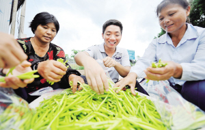28岁的刘国琪是北京大学的一名硕士毕业生,2010年,他与几个同学凑钱在定安县租了20亩田地,种起了黄花菜。如今,田地规模已扩大到80亩,黄花菜远销北京、上海、杭州等地,年净赚六七十万元。 “我们不光要种菜,还要做大黄花菜产业。”刘国琪说,他有一个理想,就是让黄花菜一年两次开花,目前他正和海南省农科院的专家做试验;他还计划开发黄花菜观光游,种植3万至5万亩连片黄花菜。 图为刘国琪(左)正在和工人一起为黄花菜打包。 新华社记者 郭程 摄