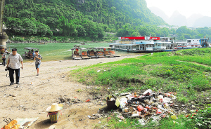 广西桂林漓江的山水美景让游客流连忘返,阳朔县的漓江竹筏游更是广受欢迎。然而,记者发现漓江两岸及竹筏码头的卫生实在堪忧:散发不良气味的垃圾随处可见,景区里也鲜见保洁人员的身影……这与周围的诗情画意极不协调。