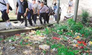 游人从漓江竹筏游的码头回来,道路两旁垃圾遍地,气味难闻。 新华社记者 陶明 摄