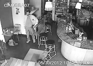 左图为监控录像截图显示枪击事件嫌疑人站在美国西雅图的一家咖啡店内。
