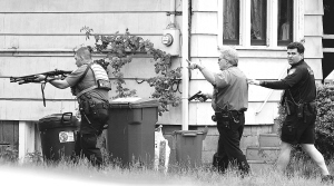 不久后,一些警员在附近区域发现一名男子的体貌特征接近咖啡馆枪击凶手,试图接近时,那名男子跪下并向自己头部开枪。