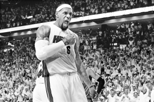 5月31日,在NBA季后赛东部决赛第二场比赛中,迈阿密热火队主场以115:111战胜波士顿凯尔特人队,总比分2:0领先。图为热火队球员詹姆斯在比赛中。 新华社发